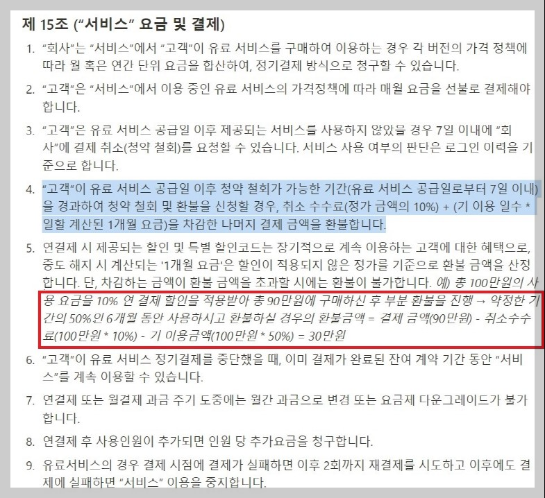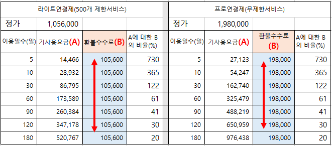 장기결제를 하다 환불해도 소비자가 단 1원도 손해보지 않는 지점 말입니다.
