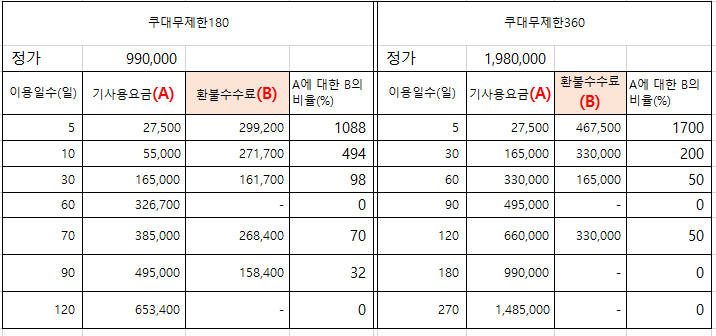 할인율에 속아서 환불 시 내야 하는 금액을 착각하실 수도 있으니가입초기부터 정확하게 환불금액을 알고 가입하시길 바랍니다.